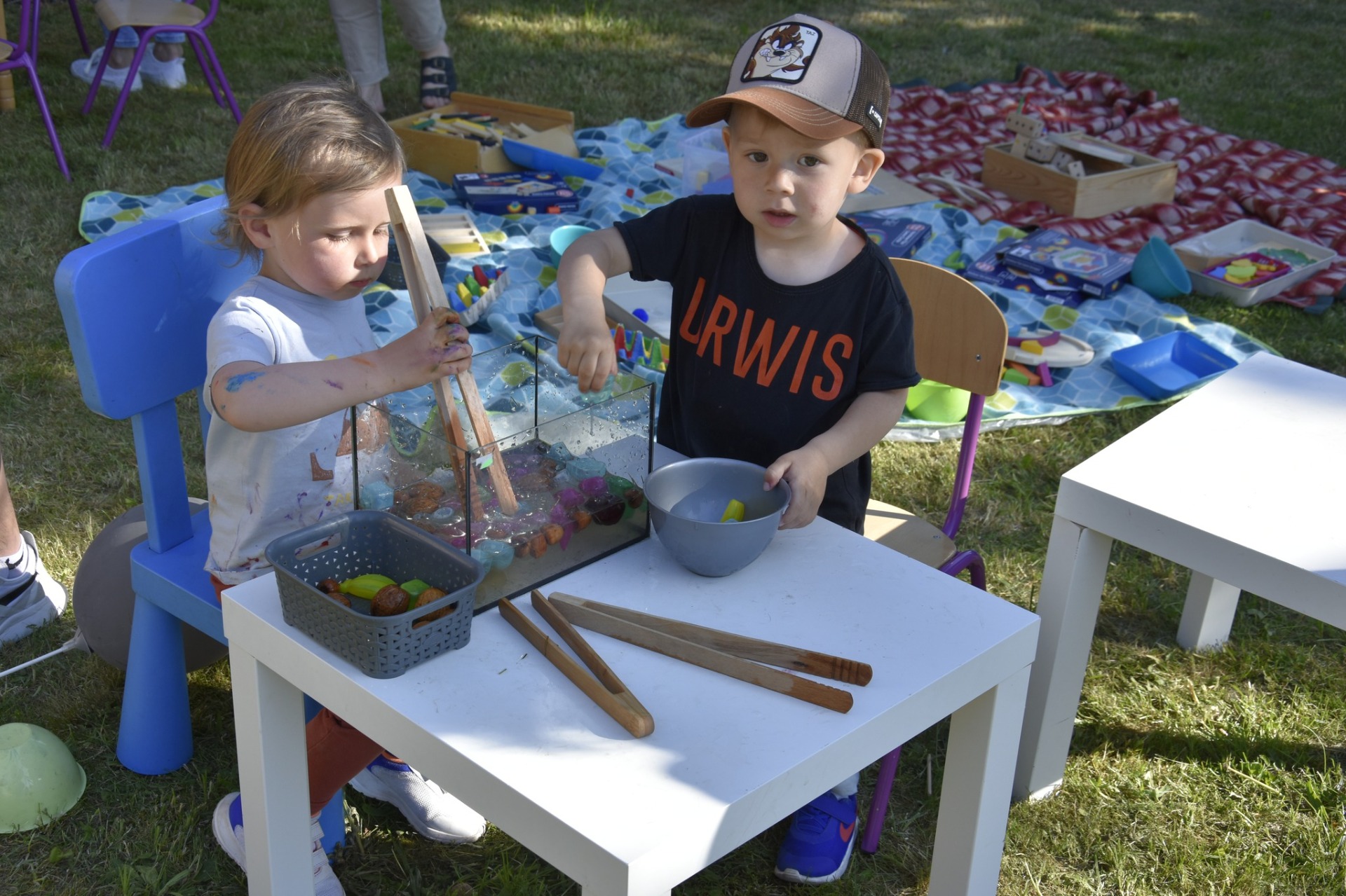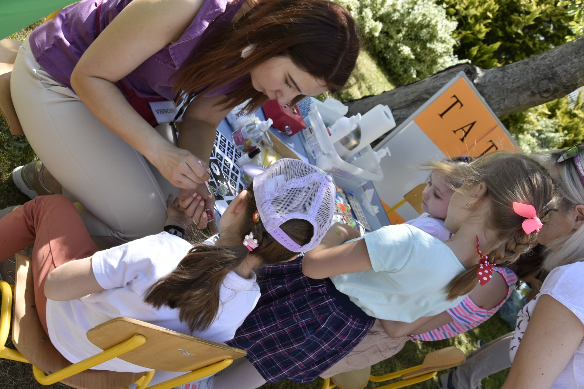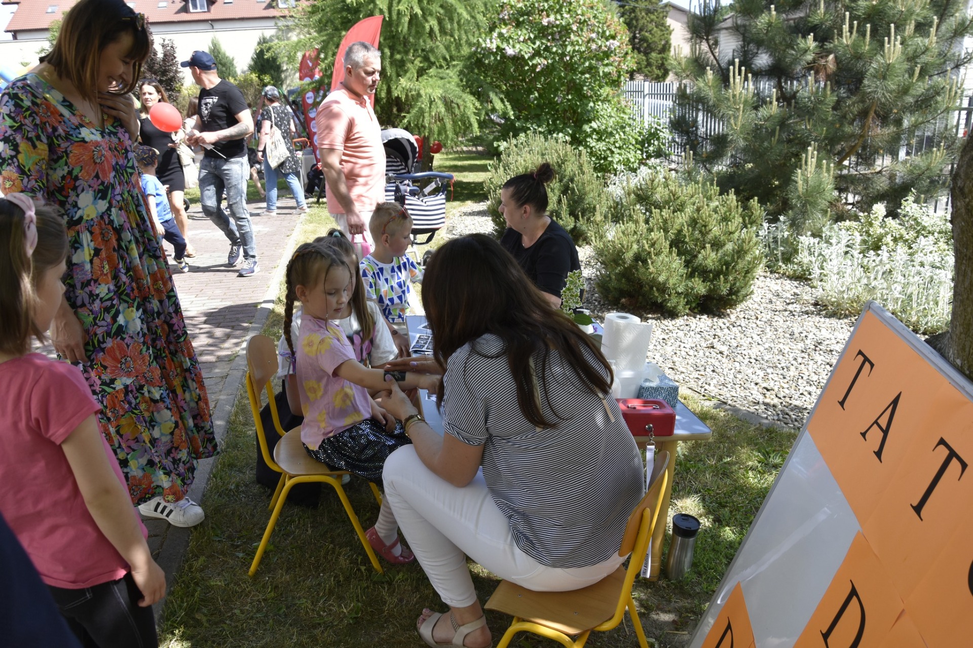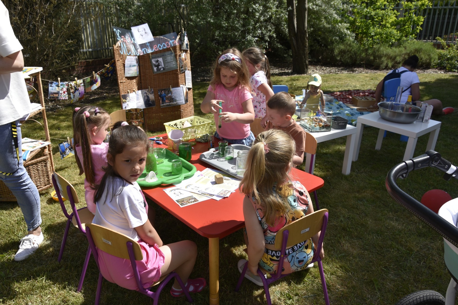 Na piknik przybyły całe rodziny, na które czekało moc atrakcji: dmuchańce, bańki mydlane, malowanie twarzy, kącik plastyczny. Dzieci mogły także skorzystać z koloryzacji włosów czy też zrobić sobie tatuaż. Zainteresowaniem przedszkolaków cieszył się także kącik M. Montessori gdzie mogły samodzielnie wykonać eksperymenty, spędzić czas przy drewnianych kolorowych układankach. Doskonałą okazją do sprawdzenia pomyślności w losowaniu było stoisko ze szczęśliwymi woreczkami.