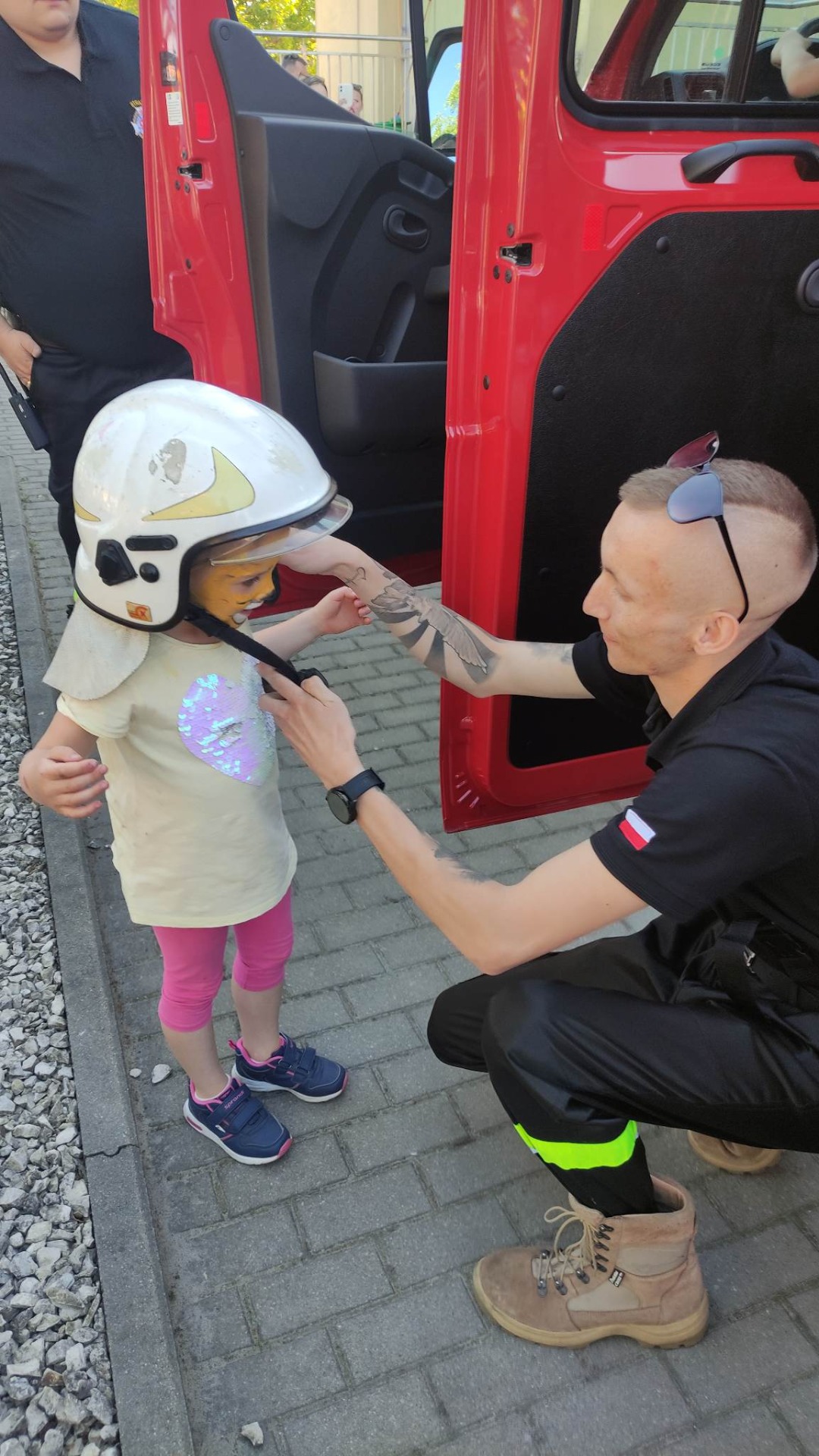 Dodatkową atrakcją była wizyta policjantów oraz strażaków. To nie lada gratka dla przedszkolaków móc zająć miejsce za kierownicą radiowozu, czy też wozu strażackiego. Imprezę swoją obecnością uświetniła także grupa motocyklistów, prezentując młodym fanom motoryzacji swoje jednoślady. O to, aby dzieciom nie brakowało sił do zabawy też zadbano, tworząc kawiarenkę z pysznymi wypiekami dostarczonymi przez rodziców, czy też serwując potrawy z grilla. Każdy mógł znaleźć coś dla siebie. Oprócz atrakcji przygotowanych przez społeczność przedszkolną można było także odwiedzić stoiska zaprzyjaźnionych firm.