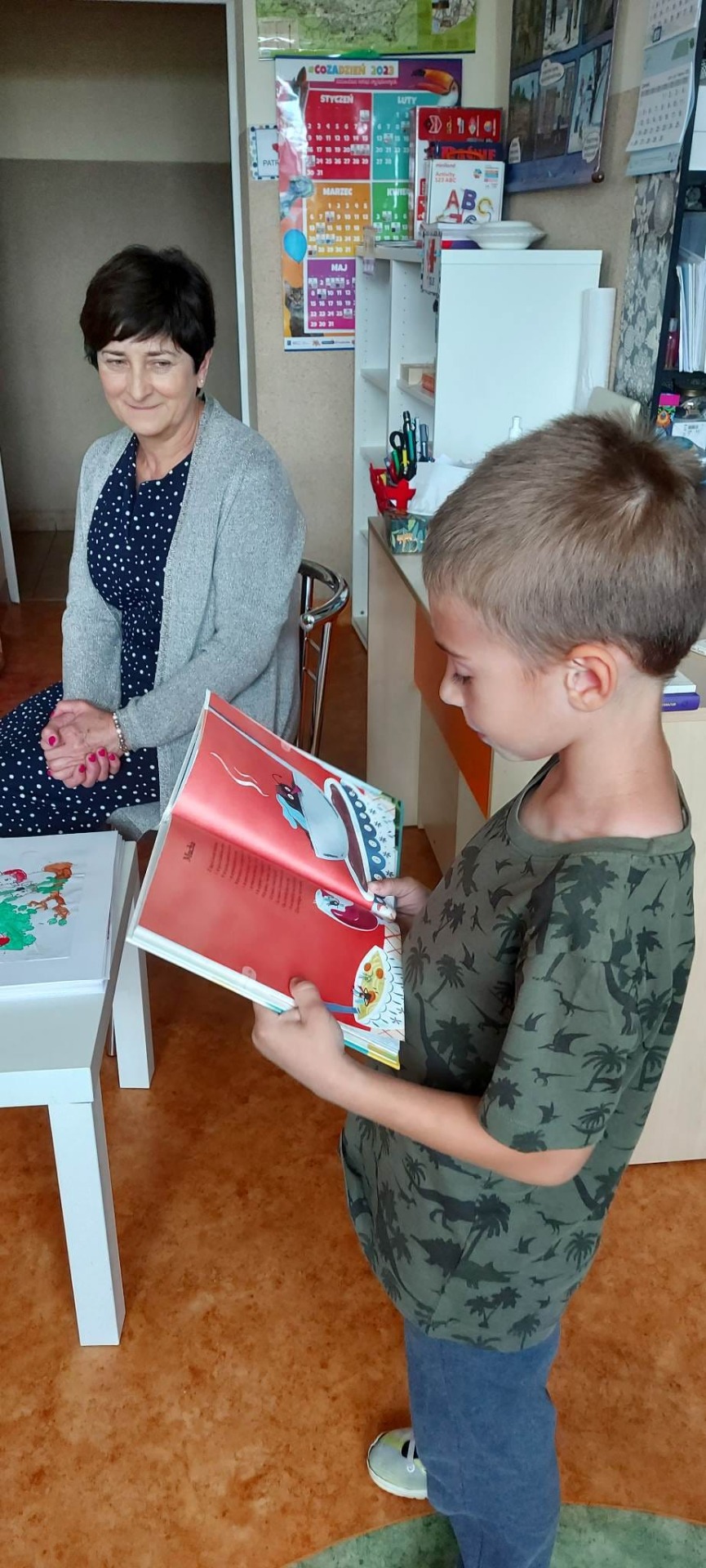Miłym akcentem na zakończenie tygodnia pełnego wrażeń, były odwiedziny pani burmistrz Krystyny Lewandowskiej, która zaprosiła dzieci do wspólnego obcowania z literaturą. W grupie dzieci młodszych opowiedziała bajkę ,,O kotku i o kogutku”. Natomiast starsze przedszkolaki wysłuchały i obejrzały bajkę ,,O wilku i siedmiu koźlątkach” zaprezentowaną z wykorzystaniem teatrzyku Kamishibai. Był to jednocześnie wyjątkowe zakończenie ogólnopolskiego projektu pn. ,,Skrzat Kamiś odkrywa teatr papierowy i zaprasza w świat bajek kolorowy”, którego Przedszkole nr 2 w Koluszkach jest współautorem. Przekazane zostały także podziękowania dla Burmistrza Koluszek Waldemara Chałata za objęcie projektu honorowym patronatem.
