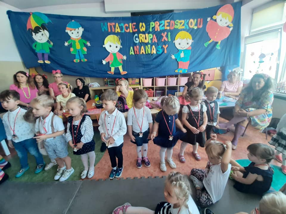 Dzień Przedszkolaka w tym roku obchodziliśmy inaczej niż ostatnio, tego dnia po przedstawieniu przygotowanym przez wychowawczynie wszystkie nowe dzieci zostały przyjęte do przedszkolnej rodziny. Po uroczystym pasowaniu przemaszerowaliśmy do parku, gdzie na scenie amfiteatru odśpiewaliśmy hymn przygotowany specjalnie na ten dzień. Na koniec w niebo pofrunęły balony z naszymi marzeniami. Śpiew i dobry humor towarzyszył nam przez cały dzień
