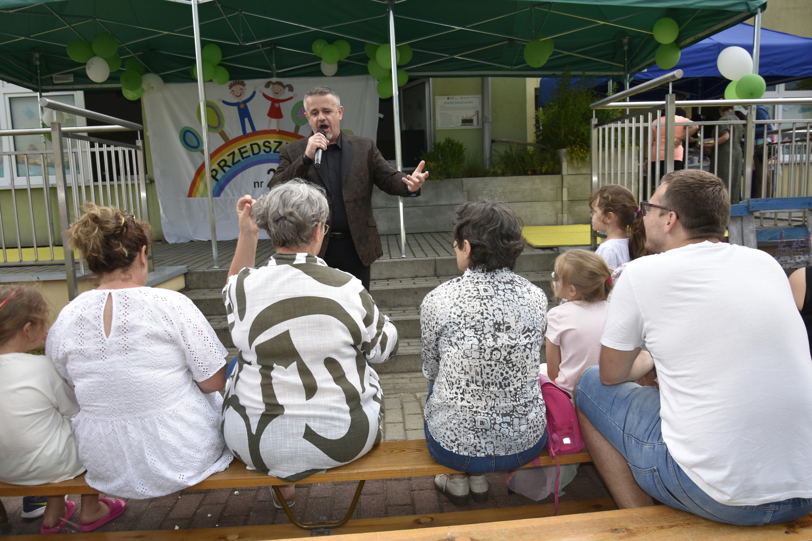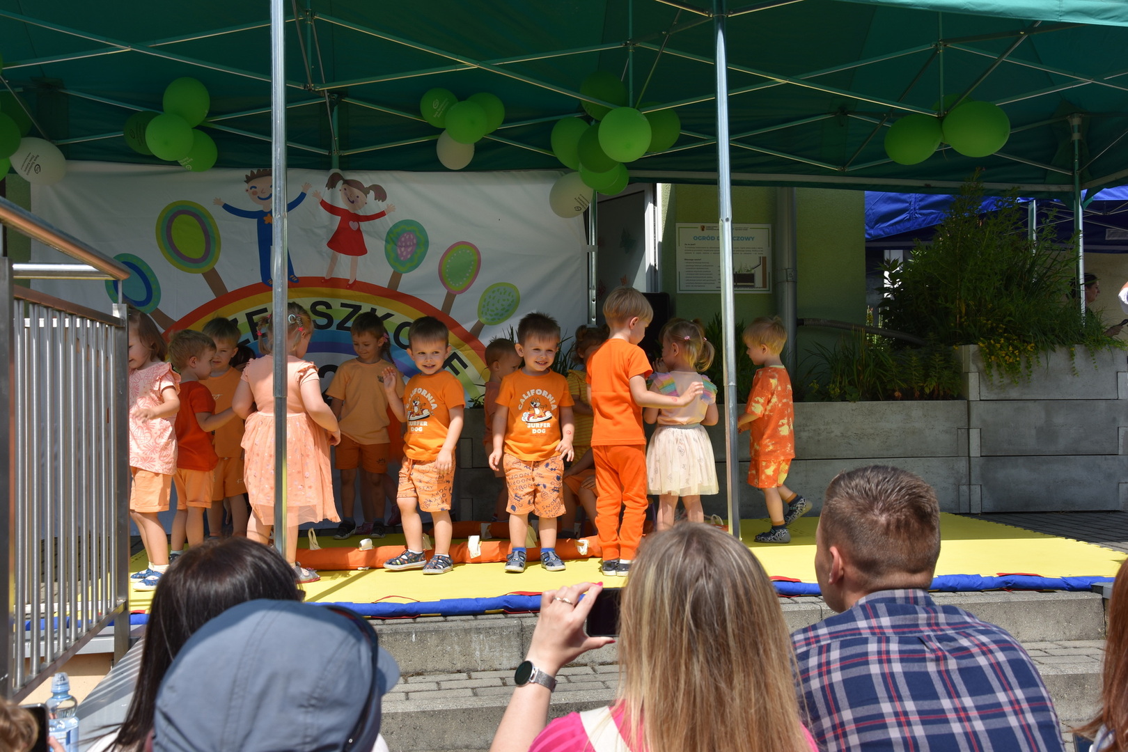 W piątek 7.06.2024 w ogrodzie przedszkolnym odbył się PIKNIK RODZINNY. Impreza rozpoczęła się od występów dzieci, które wierszami i piosenkami pokazały jak bardzo kochają swoich rodziców. Na piknik przybyły całe rodziny, na które czekało moc atrakcji: dmuchańce, konkurencje sportowe i zabawy ruchowe pod okiem Pani Kasi, było tez malowanie twarzy, robienie tatuży oraz koło fortuny. Czas umilał swoim występem Pan Romuald Spychalski. Na pikniku nie zabrakło dobrego jedzenia: kiełbasek, kurczaka i karkówki z grilla,największym powodzeniem cieszyły się pyszne ciasta upieczone przez rodziców. Podczas imorezy pamiętaliśmy również bobasach. To dla nich pod okiem wspanialej siatkarki Pani Małgorzaty Niemczyk zostal zorganizowany bieg.Uśmiechnięte buzie naszych przedszkolaków tych małych i dużych oraz rodziców i dziadków świadczą, że piknik był udany