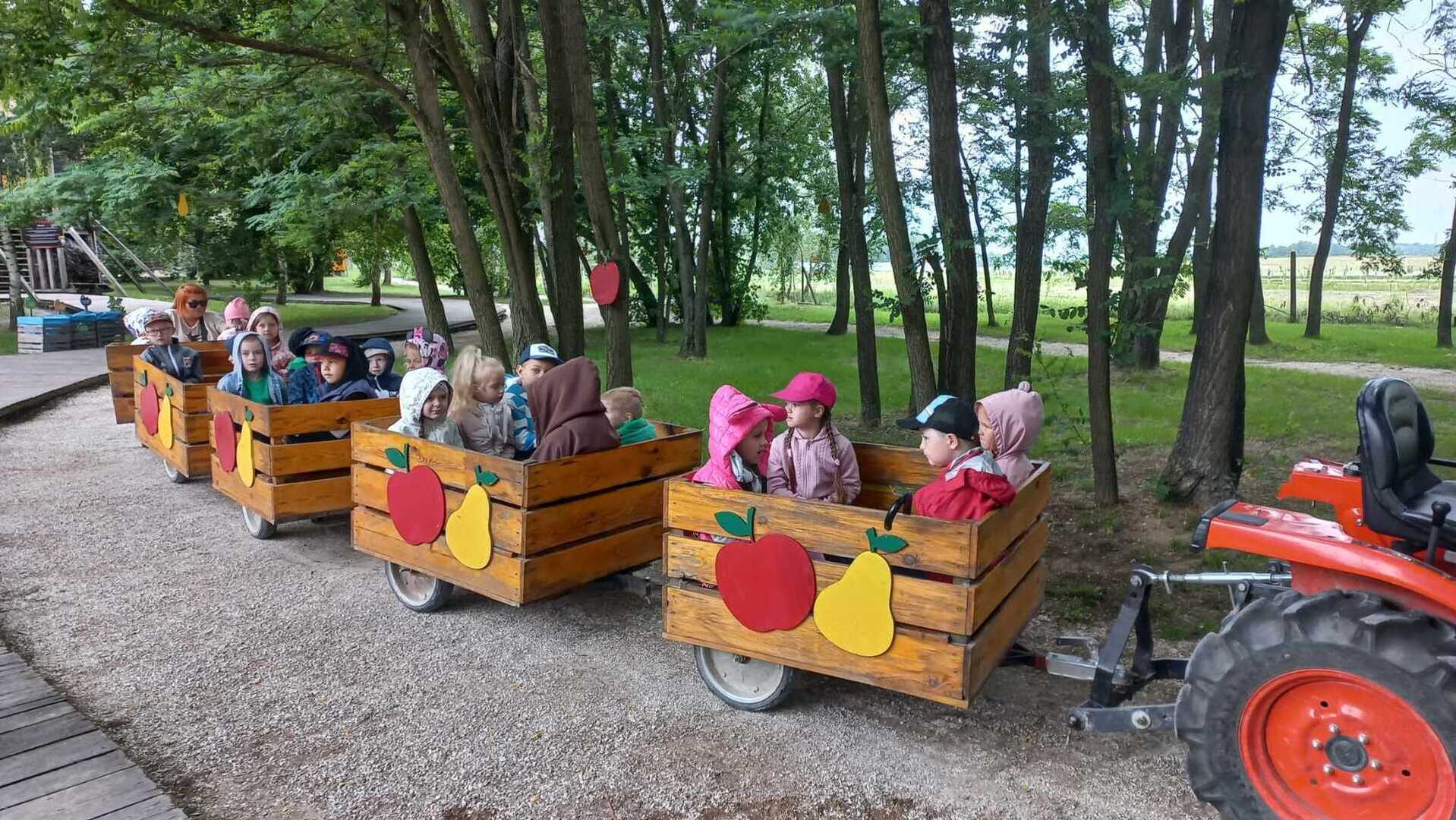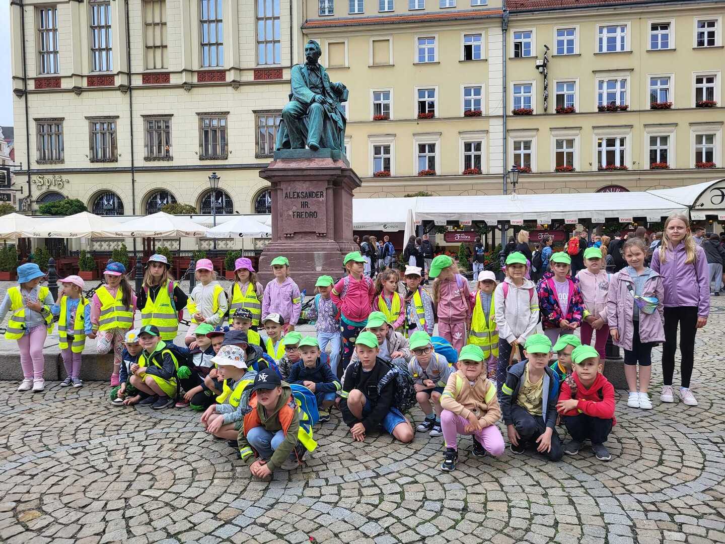 Czerwiec to miesiąc wycieczek. Najmłodsze przedszkolaki z grupy I i II odwiedziły Baśniową kawiarenkę. Była to ich pierwsza wycieczka autokarowa. Dzieci obejrzały bajkę pt: "Brzydkie Kaczątko", było dużo śmiechu, chwile wzruszenia i ... pyszny poczęstunek! Dzieci z grupy III, IV, V,VI,IX i X uczestniczyły w wycieczce do Sadów Klemensa w Komorowie, podczas której miały możliwość poszerzenia wiadomości na temat przyrody oraz zapoznały się z ciekawostkami dotyczącymi sadów. W tym miejscu edukacja łączy się z zabawą, dlatego też dzieci brały udział w wielu zabawach ruchowych i zręcznościowych, zabawach na dmuchańcach, tworzyły konstrukcje z piasku, odpoczywały w tężni solankowej. Ogromną radość sprawił dzieciom przejazd kolejką, której wagoniki przypominały skrzynki na owoce. Zabawa w otoczeniu drzew i roślinności dała wszystkim wiele radości i wprawiła w dobry nastrój. Na wycieczkę edukacyjno - rekreacyjną do Wrocławia wyruszyły dwie najstarsze grupy z naszego przedszkola- grupa VII I VIII. Najpierw starszaki udały się na znaną wszystkim urokliwą wrocławską wyspę-Ostrów Tumski. Tam podziwiali piękną katedrę oraz spacerowali po Moście Tumskim. Kolejnym punktem, który odwiedzili we Wrocławiu był Rynek tego miasta. Przepiękna Starówka i niesamowity późnogotycki Ratusz, który wygląda jak domek z piernika zachwyciły wszystkich.Idąc w kierunku Starego Miasta, po drodze szukali krasnoludków, które ukryte są w całym mieście. Następnie udali się do wrocławskiego ZOO. W tym miejscu zwiedzali Afrykarium i jego niesamowite podwodne skarby. Podziwiali ryby i rośliny z mórz i oceanów. Wywarły one na nich ogromne wrażenie. Potem spacerowali jeszcze po całym ogrodzie zoologicznym, poznając zwierzęta z całego świata. Ostatni punkt wycieczki to kolacja w McDonaldzie. To piękne i malownicze miasto na długo zapadnie w pamięci naszych najstarszych przedszkolaków...