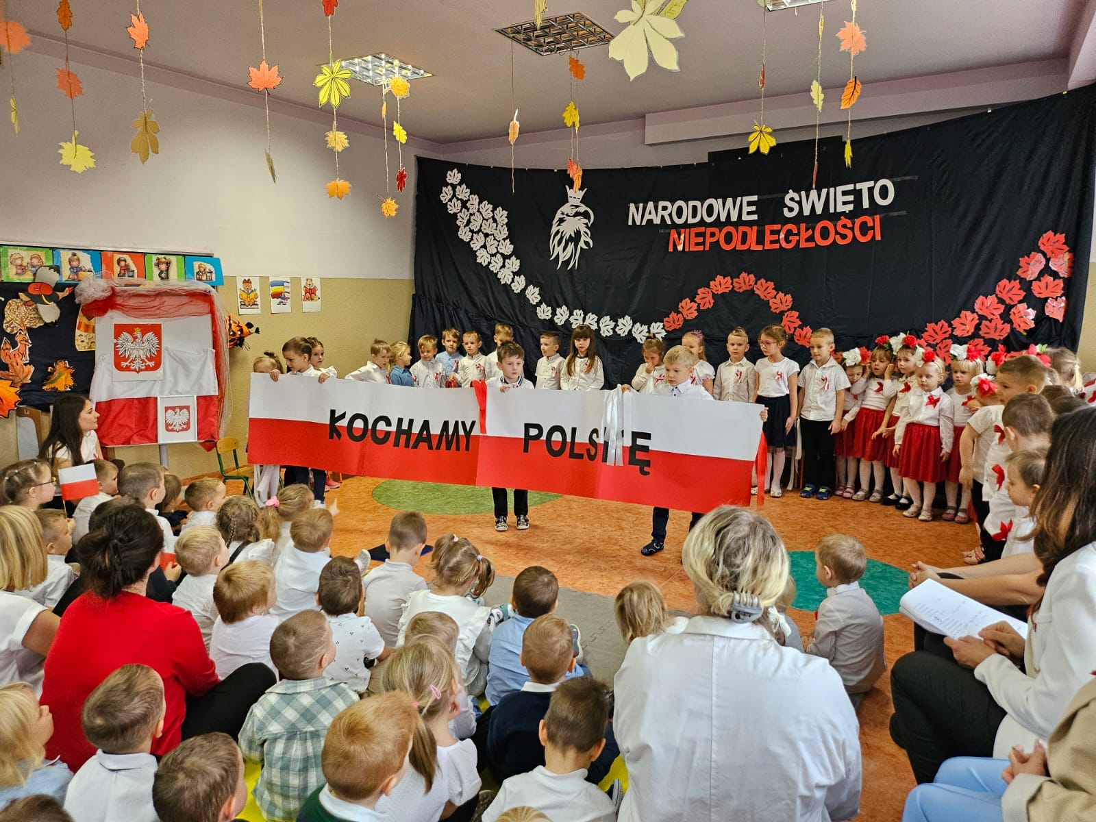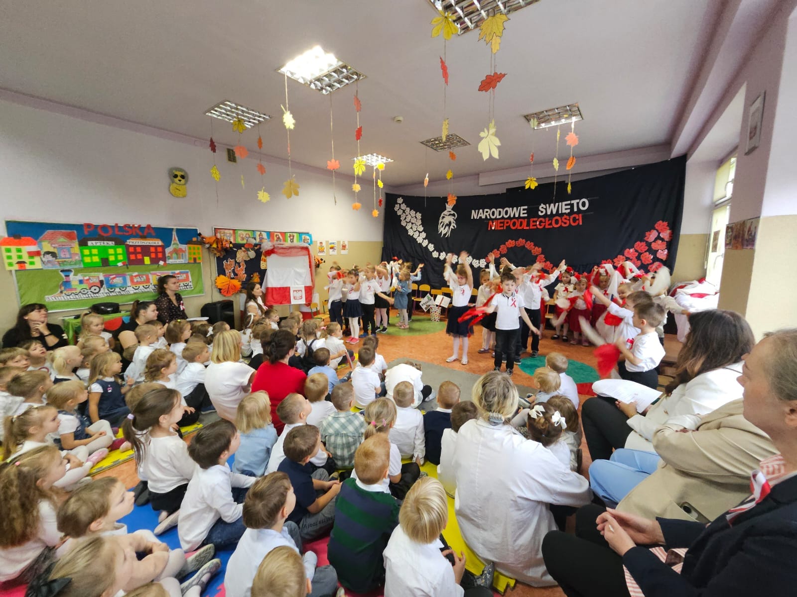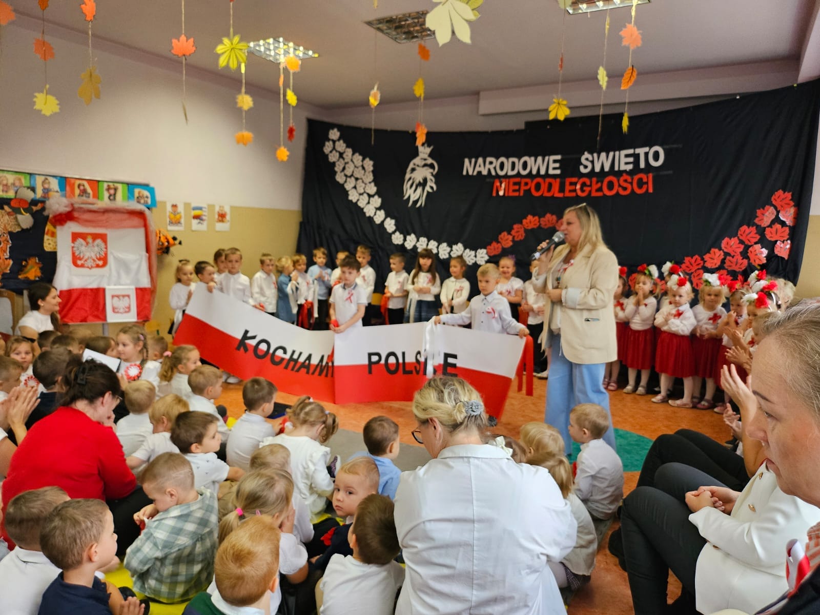 11 listopada 1918 roku był bardzo szczęśliwym dniem dla wszystkich Polaków. Właśnie tego dnia po 123 latach niewoli, Polska odzyskała niepodległość. Dlatego co roku 11 listopada obchodzimy nasze Święto Narodowe – Święto Niepodległości. Dzieci w naszym przedszkolu tańcem, słowem i piosenką oddały szacunek symbolom narodowym, symbolom walki o wolność i zwycięstwo oraz okazały miłość do Ojczyzny. Cała społeczność przedszkolna odśpiewała Hymn Narodowy przyłączając się do akcji MEN #SzkołaDoHymnu.