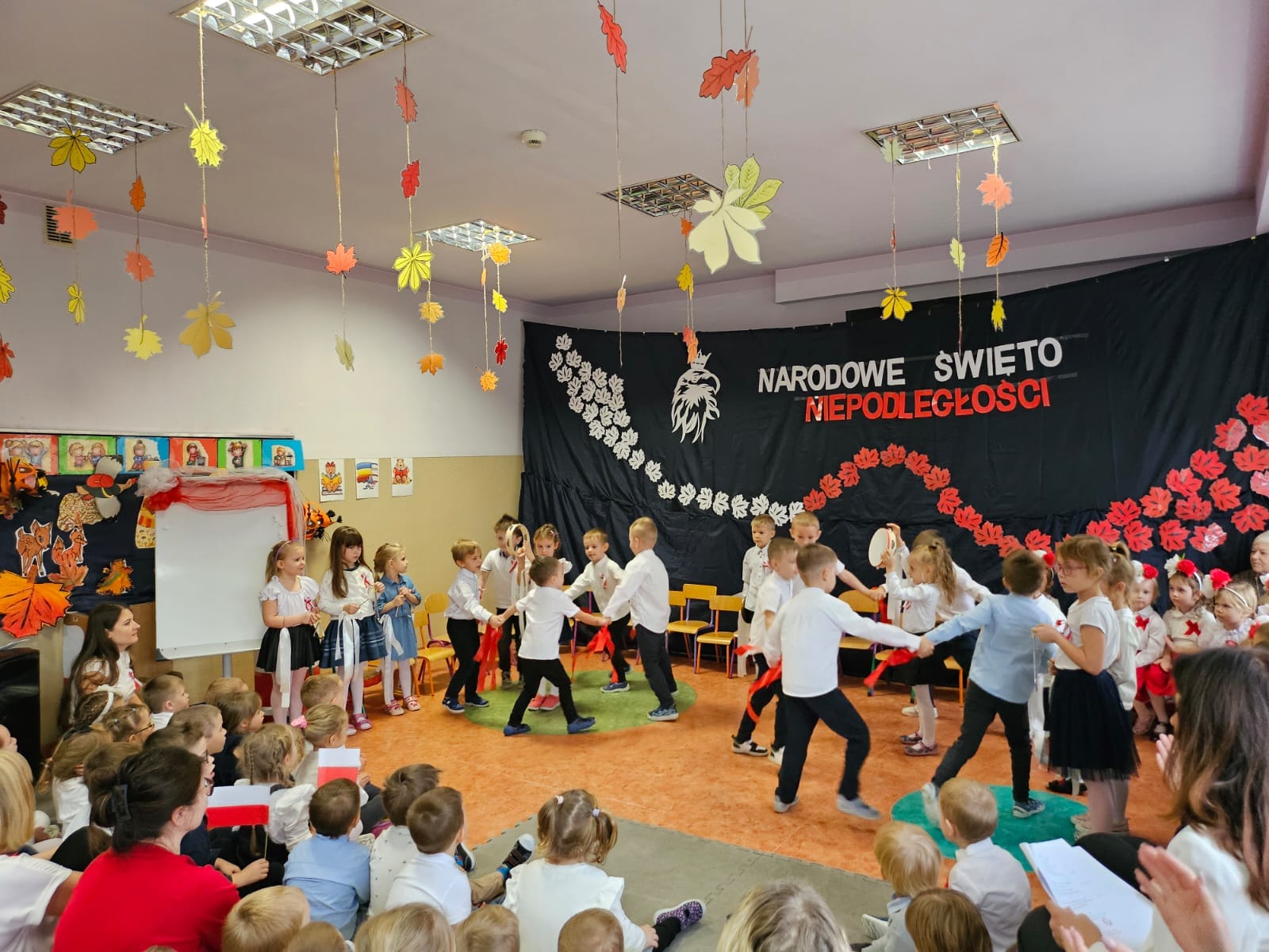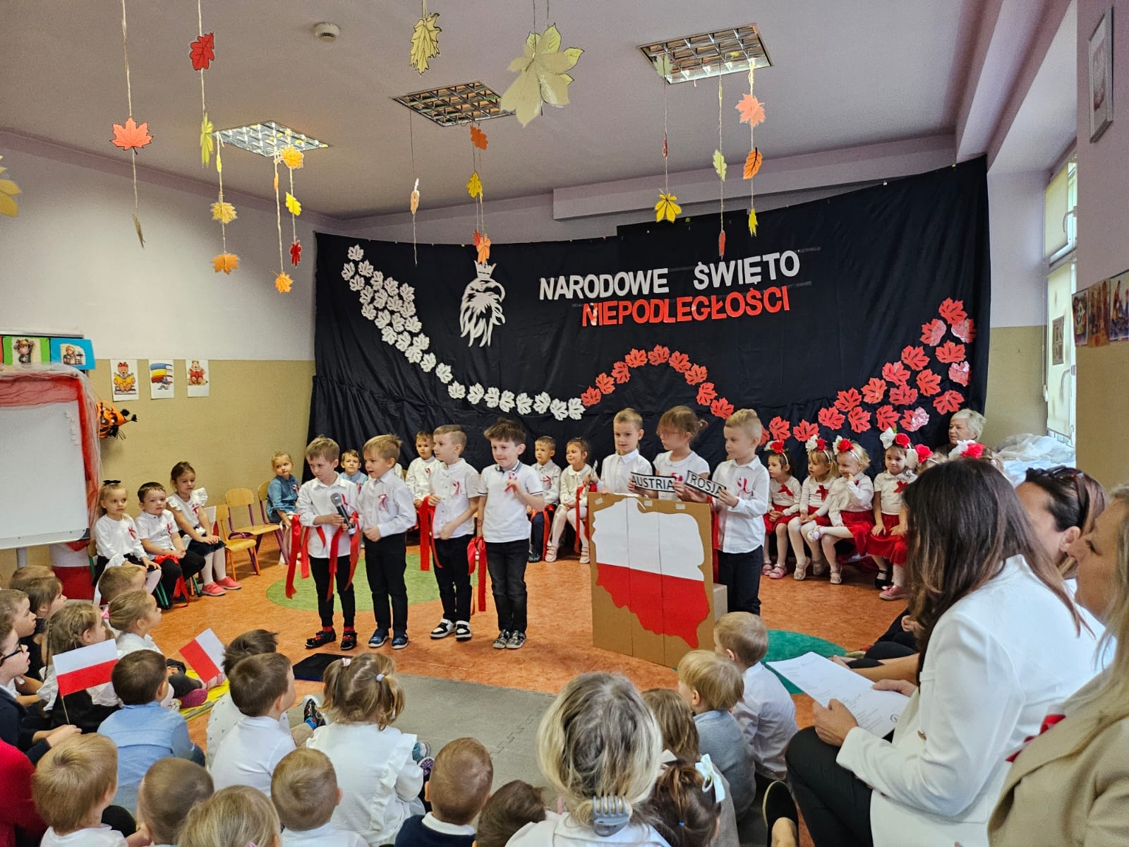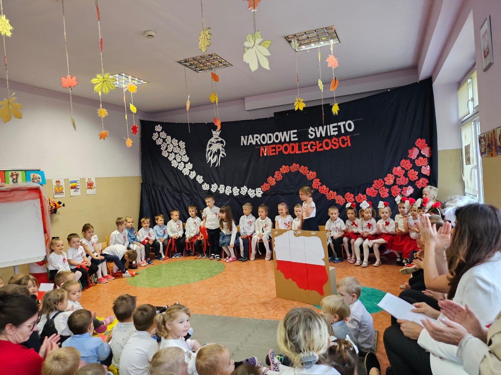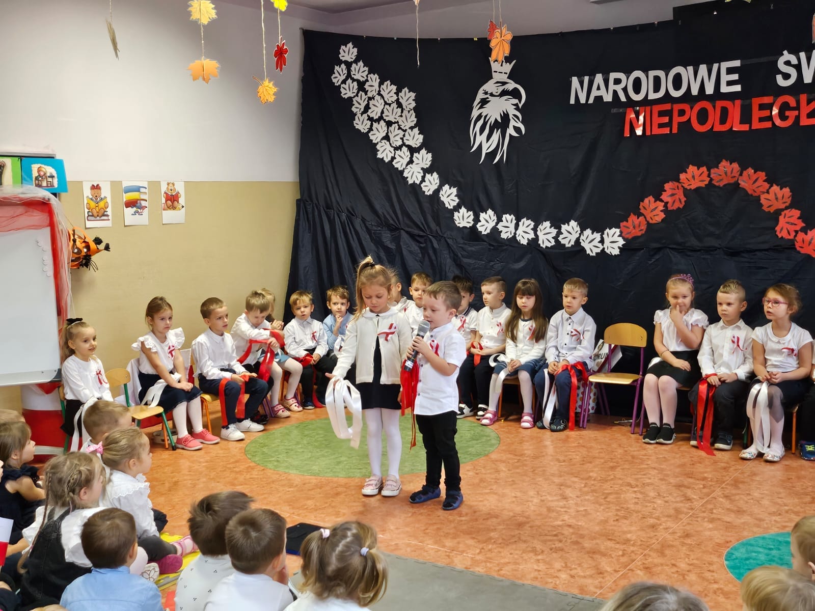 11 listopada 1918 roku był bardzo szczęśliwym dniem dla wszystkich Polaków. Właśnie tego dnia po 123 latach niewoli, Polska odzyskała niepodległość. Dlatego co roku 11 listopada obchodzimy nasze Święto Narodowe – Święto Niepodległości. Dzieci w naszym przedszkolu tańcem, słowem i piosenką oddały szacunek symbolom narodowym, symbolom walki o wolność i zwycięstwo oraz okazały miłość do Ojczyzny. Cała społeczność przedszkolna odśpiewała Hymn Narodowy przyłączając się do akcji MEN #SzkołaDoHymnu.