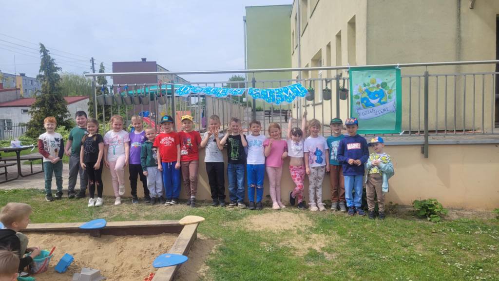 Nasze dzielne dzieciaki na zdjęciach grupowych podczas obchodów Dnia Ziemi